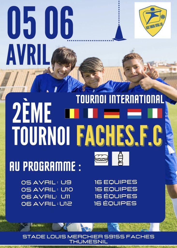 📍 Stade Louis Merchier – 170 rue Henri Dillies, 59155 Faches-Thumesnil (Nord – Hauts-de-France) 📅 Dimanche 5 & Lundi 6 avril 2026 Le FC Faches a le plaisir d’annoncer la tenue de son tournoi jeunes sur ses installations les 5 et 6 avril 2026. Une édition exceptionnelle qui se déroulera sur le nouveau terrain en herbe dernière génération 🌱⚽, offrant un cadre de jeu idéal pour tous les jeunes footballeurs. 📋 Programme par catégorie 🔵 Dimanche 5 avril 2026 U9 – Foot à 8 : 16 équipes U10 – Foot à 8 : 16 équipes 🟡 Lundi 6 avril 2026 U11 – Foot à 8 : 16 équipes U12 – Foot à 8 : 16 équipes Chaque équipe est composée de 8 joueurs + 3 remplaçants maximum 👥. 🍔🥤 Restauration & Convivialité Buvette et restauration disponibles sur place tout au long du week-end pour accueillir joueurs, staffs et familles dans une ambiance chaleureuse. ⚠️ Infos pratiques 📌 Lieu : Stade Louis Merchier, 170 rue Henri Dillies, 59155 Faches-Thumesnil 🗺️ Département : Nord (59) 🌍 Région : Hauts-de-France Le club vous attend nombreux pour deux journées placées sous le signe du plaisir, du fair-play et de la convivialité ⭐.