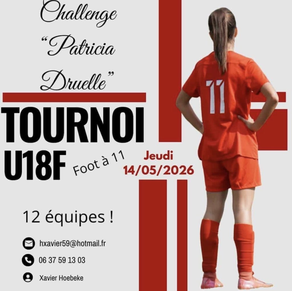 📅 14 mai 2026 📍 Meurchin, Pas‑de‑Calais (62), Hauts‑de‑France ⚽ Tournoi Féminin U18 – Foot à 11 12 équipes prêtes à enflammer le terrain et à montrer tout leur talent ! Venez soutenir ces jeunes joueuses et vibrer au rythme des matchs intenses et passionnés. 🏆 Une journée placée sous le signe du sport, de la compétition et de la convivialité ! 📞 Infos & inscriptions : Xavier Hoebeke — 06 37 59 13 03 📧 hxavier59@hotmail.fr