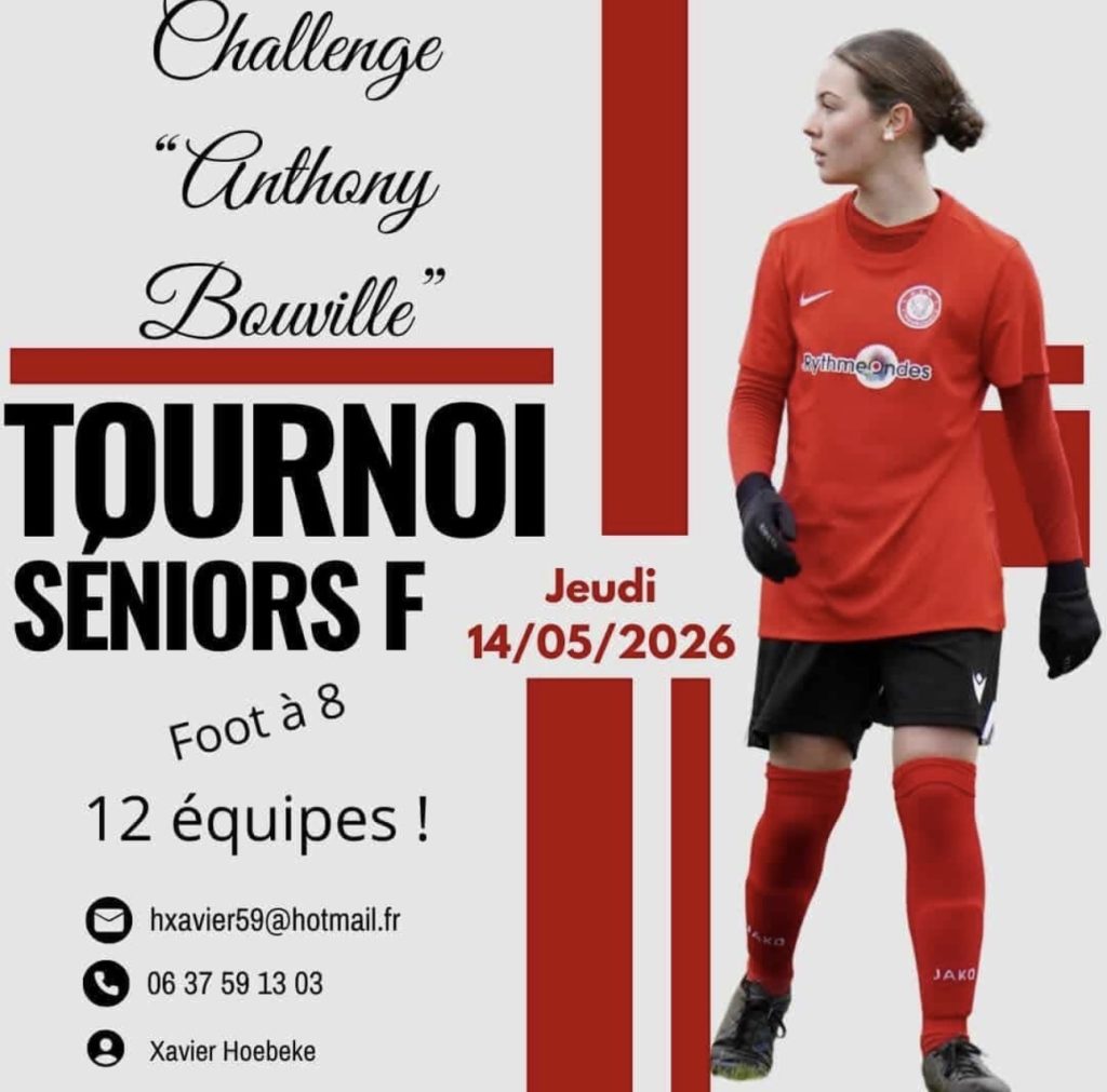 📅 14 mai 2026 📍 Meurchin, Pas‑de‑Calais (62), Hauts‑de‑France ⚽ Tournoi Féminin Seniors – Foot à 8 8 équipes prêtes à enflammer le terrain et à montrer tout leur talent ! Venez soutenir ces jeunes joueuses et vibrer au rythme des matchs intenses et passionnés. 🏆 Une journée placée sous le signe du sport, de la compétition et de la convivialité ! 📞 Infos & inscriptions : Xavier Hoebeke — 06 37 59 13 03 📧 hxavier59@hotmail.fr