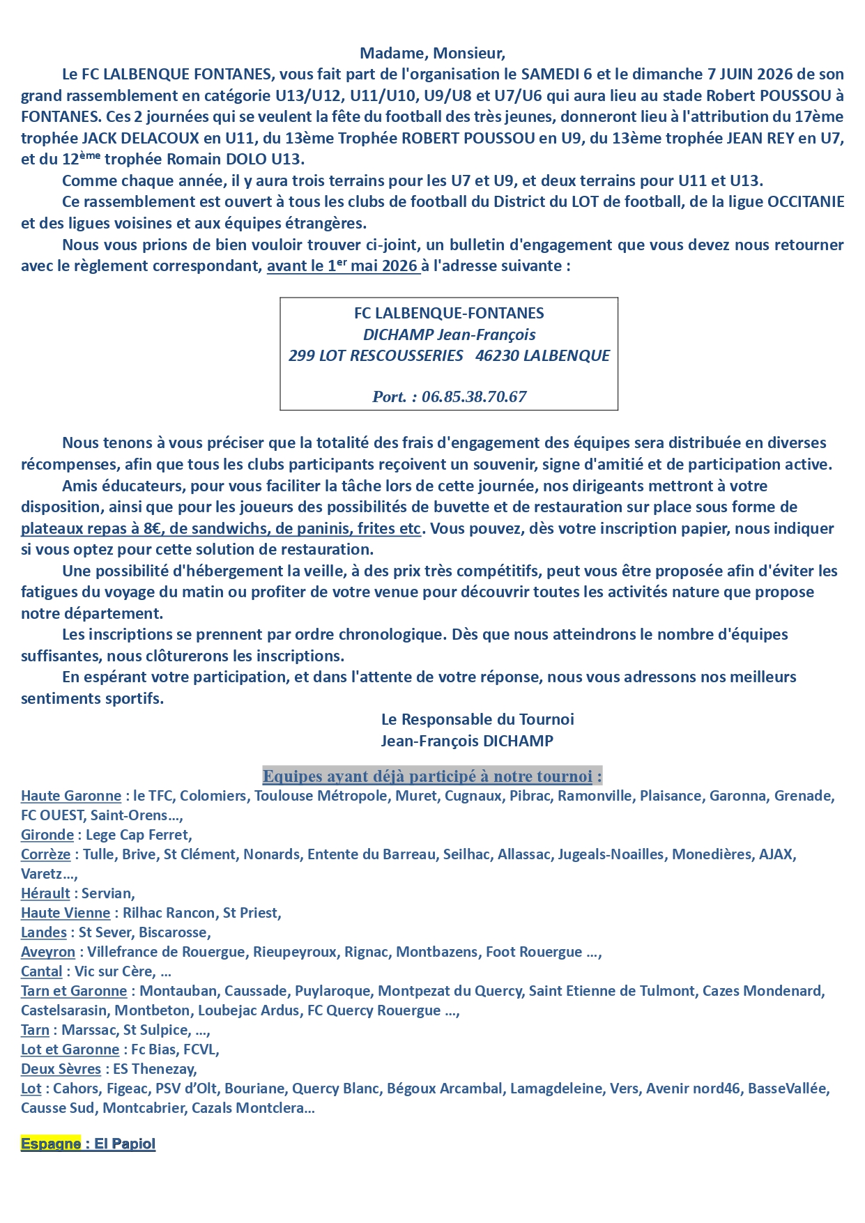 Le Football Club Lalbenque Fontanes organise la 19e Ă©dition de son grand tournoi annuel les 6 et 7 juin au Stade Robert Poussou Ă Fontanes âœđ„