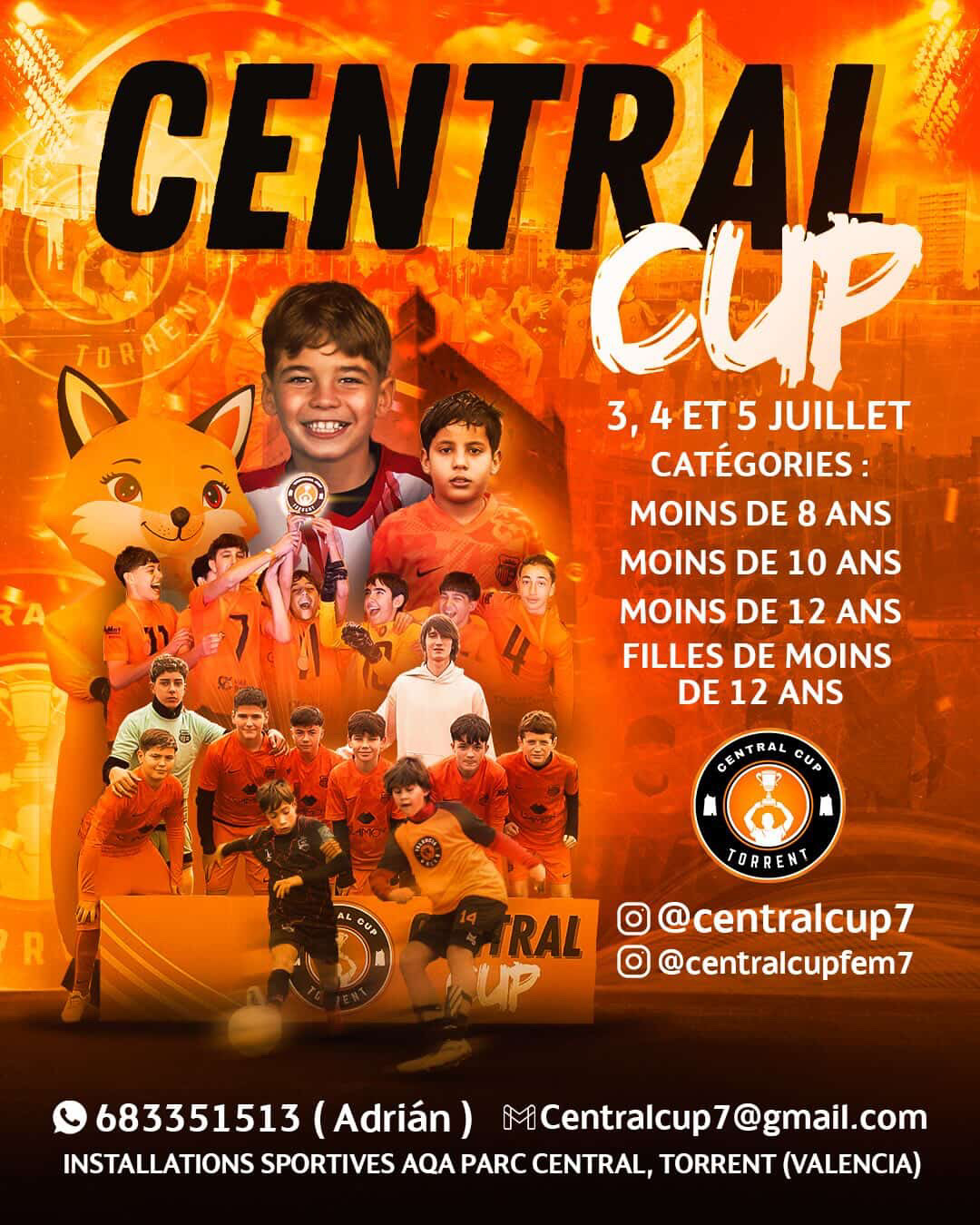 Central Cup est un tournoi international de football jeunes qui se dĂ©roulera les đ 3, 4 et 5 juillet dans les installations sportives dâđ AQA Parc Central Ă Torrent (Valencia).